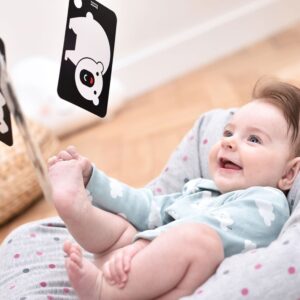 - Move the cards in front of your baby’s eyes from up to down, right to left, closer and further away. The movement should be slow and smooth, allowing the baby to practice visual tracking, as well as develop concentration and focus and strengthen eye muscles.