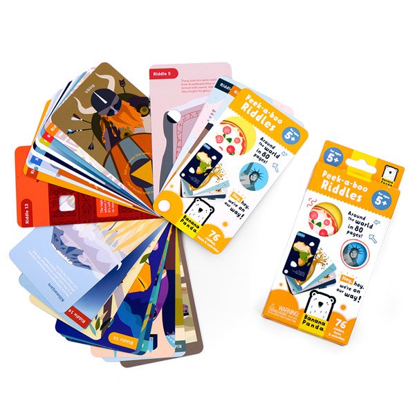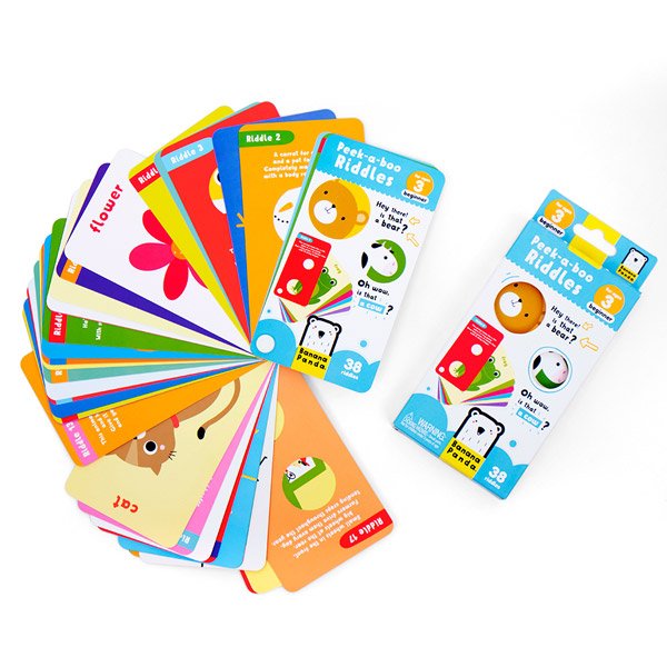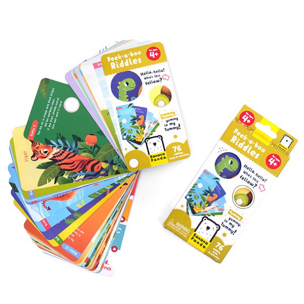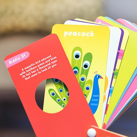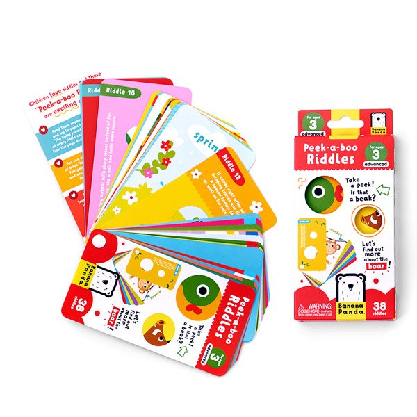 As your child grows, the questions need to be more challenging. Peek-a-boo Riddles is a series for older children. Each booklet contains 38 riddles presented in a unique format. Every question takes the form of a short rhyming poem, and fragments of the illustrated answer are visible through special holes. For younger children, these fragments are a hint, while for older children they seem like a fun-ny trick!