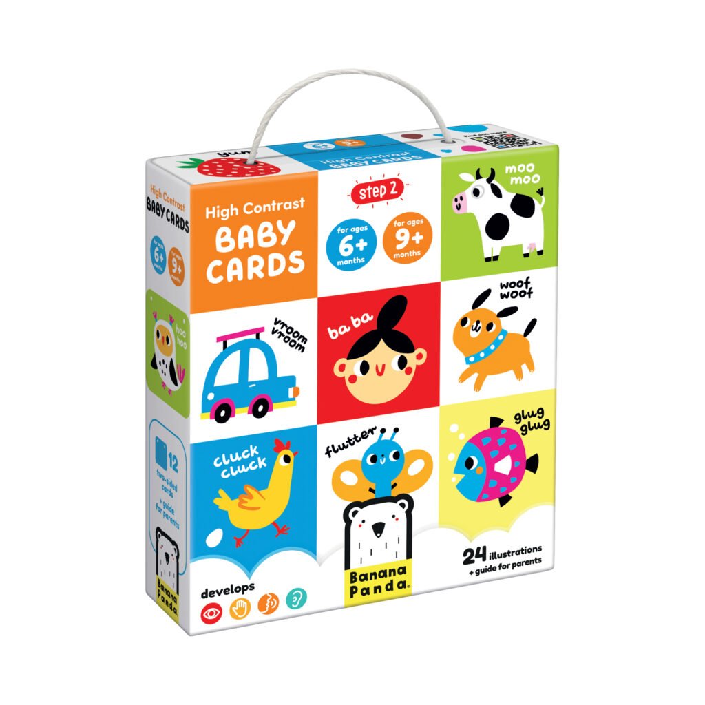 - Contrast illustrations. Show them to your baby and talk about what you see. Each of our contrast sets (Baby Cards for ages 0-3, High Contrast Baby Pack) includes a guide full of development-related information and ideas for using the cards and booklets.